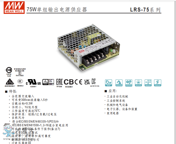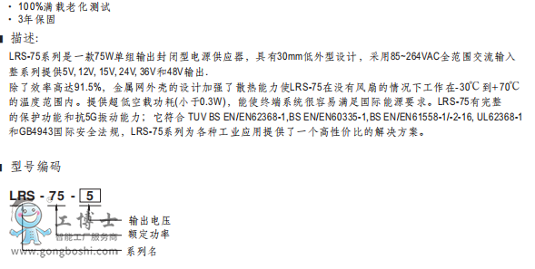 明緯電源LRS-75-15V電源供應器現貨