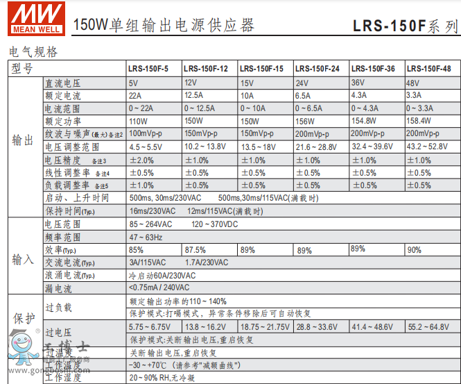 明緯電源LRS-150F-24V供應器現貨