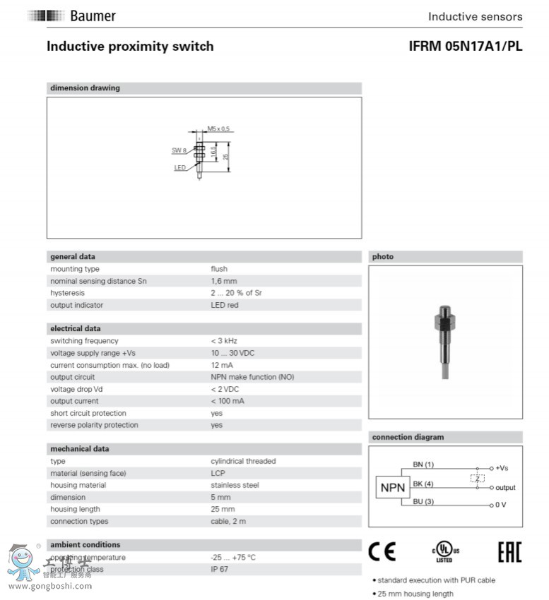 IFRM 06N1701/KS35L 引線接頭 M8 NPN 常開 (NO) 30 mm LED 紅色
