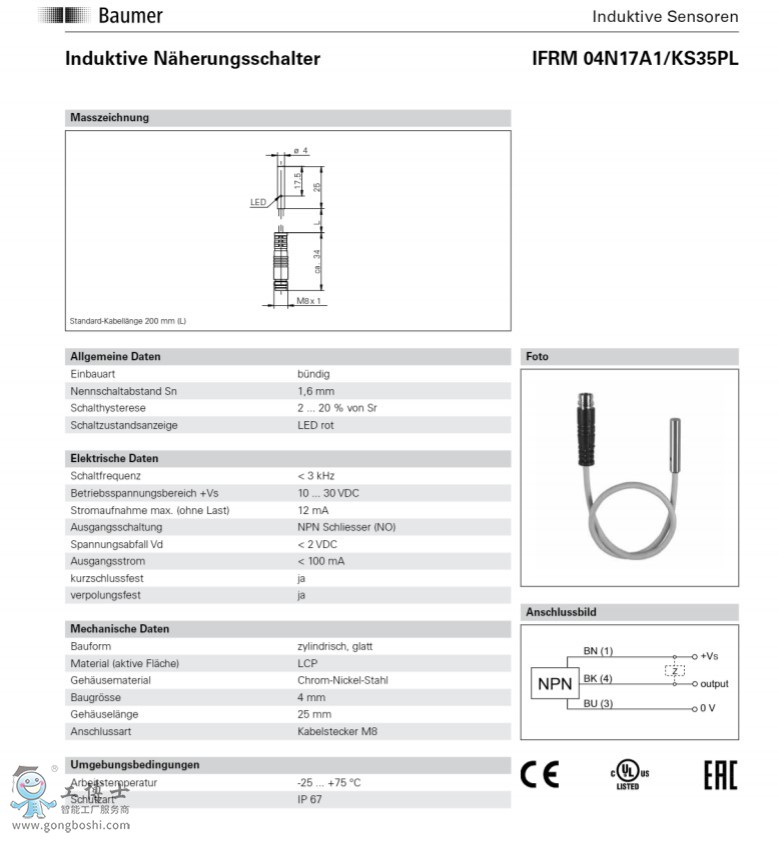Baumer/堡盟IFRM 04N37A1/KS35PL電感式接近開關(guān)傳感器