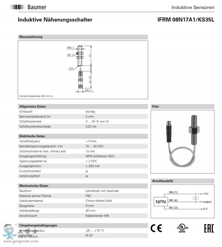 IFRM 08N17A1/KS35L堡盟傳感器Baumer電感式接近開關 |