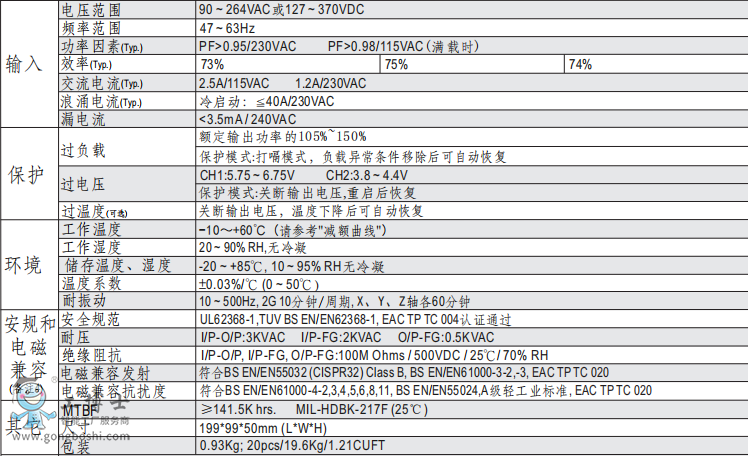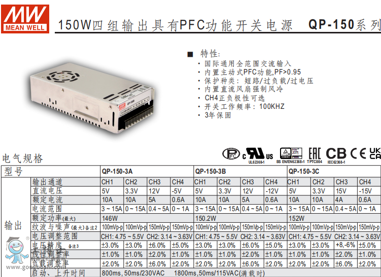 明緯電源PFC-150-3A功能開關(guān)電源現(xiàn)貨
