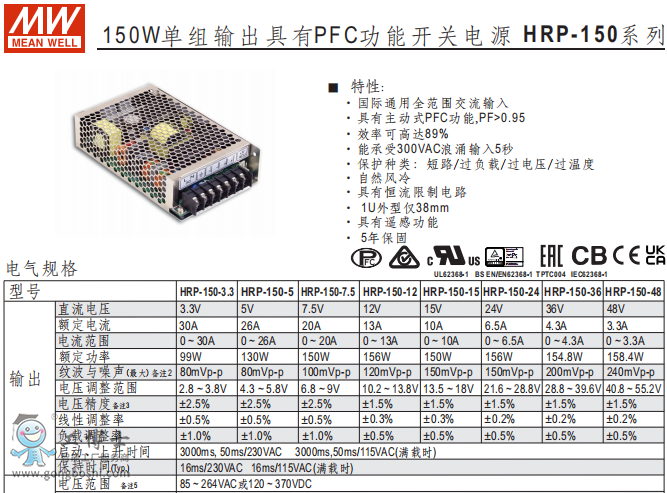 明緯HRP-150-36V功能開關電源現(xiàn)貨