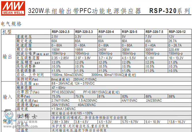 明緯RSP-320-5V功能開關電源現貨