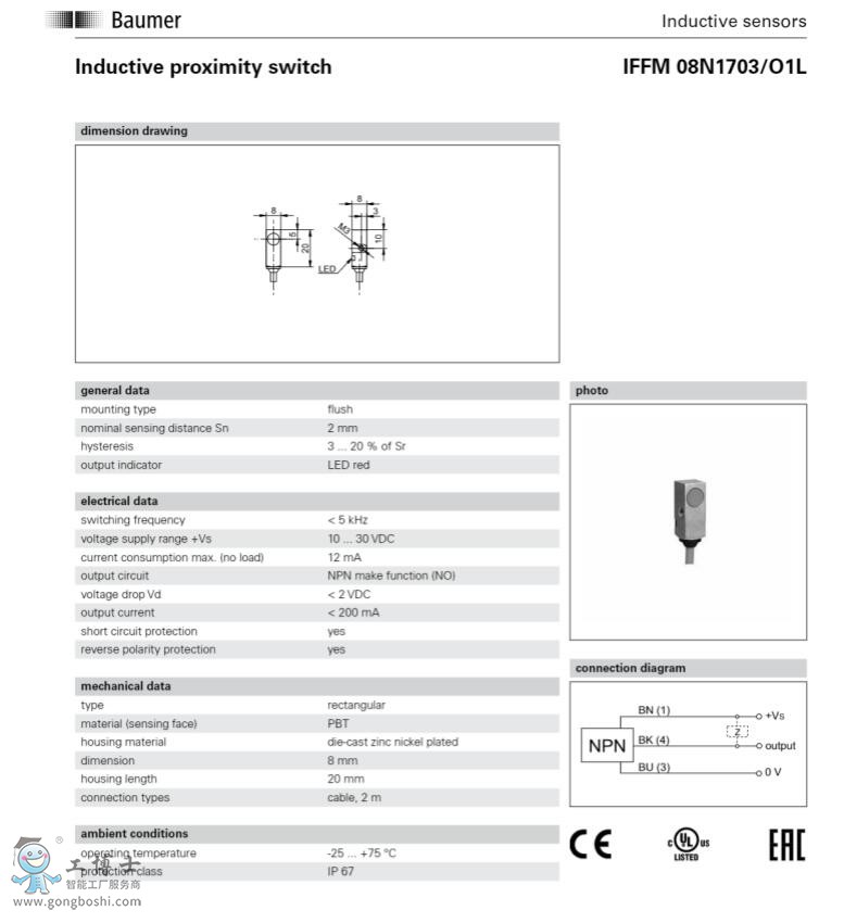 IFFM 08P17A5/O1S35L電感式接近開關-Baumer 堡盟傳感器 |