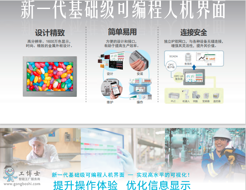 1、設計精致:高分辨率、1600萬色顯示,時尚、精致的金屬外框設計。提高了可操作性,輕松實現對簡單設備的改善。