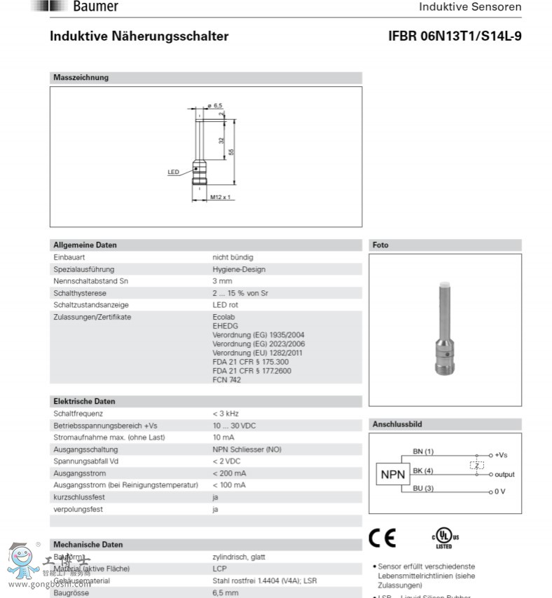 IFBR 06N33T1/S14L-9電感式接近開關-Baumer堡盟傳感器 |