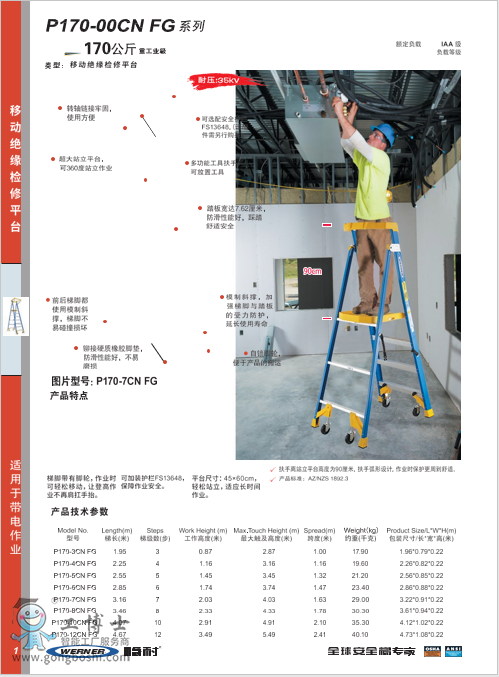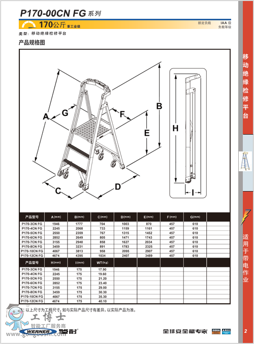 WERNER穩耐P170-00CN FG系列玻璃鋼絕緣梯子