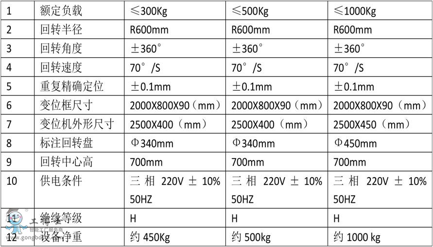 工博士焊接版變位機 型號:H型(單軸) 參數(shù)資料。