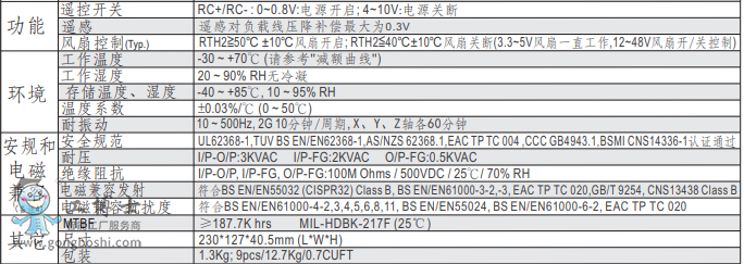 明緯開關電源RSP-5 0 0-15v系列