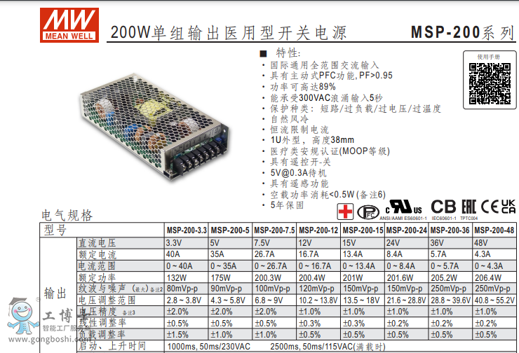 明緯開關MSP- 200-12v系列功能開關電源現貨