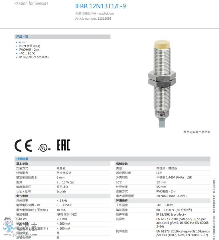 Baumer/堡盟IFRR 12N13T1/L-9電感式接近開關傳感器 |