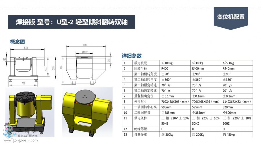 工博士 焊接版 型號:U型-2 輕型傾斜翻轉雙軸 變位機