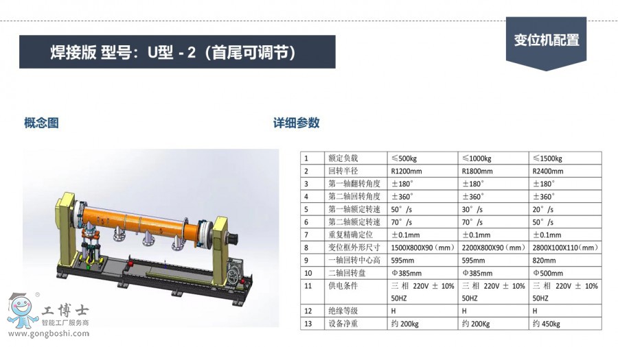工博士 焊接版 型號(hào):U型 - 2(首尾可調(diào)節(jié))變位機(jī)