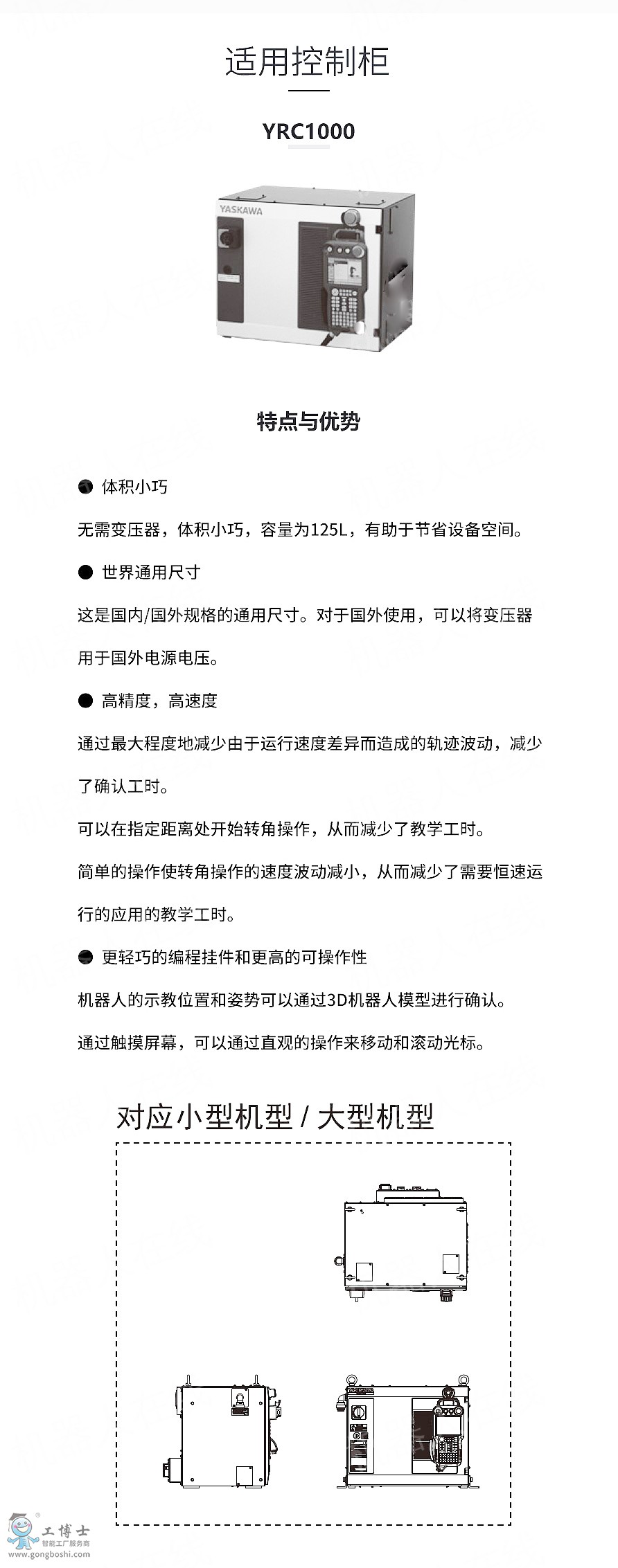 生產效率大幅度提升 ●合成速度比原有機型提升約30% 實現節拍時間縮減 ●采用了減小手臂與周邊設備的干涉的設計 ●大負載可實現多個領域的搬運 ●采用中空手臂構造,可將傳感線纜以及氣體管道內置其中 抗干擾的堅固構造 ●機器人手腕部分采用IP67標準 ●可對應接頭基座面向下引出 提升維護性 ●減少了機器人與控制柜間的電纜線數,提升了維護性的同時提供簡潔的設備 ● 大幅度縮減電纜定期更換作業時間