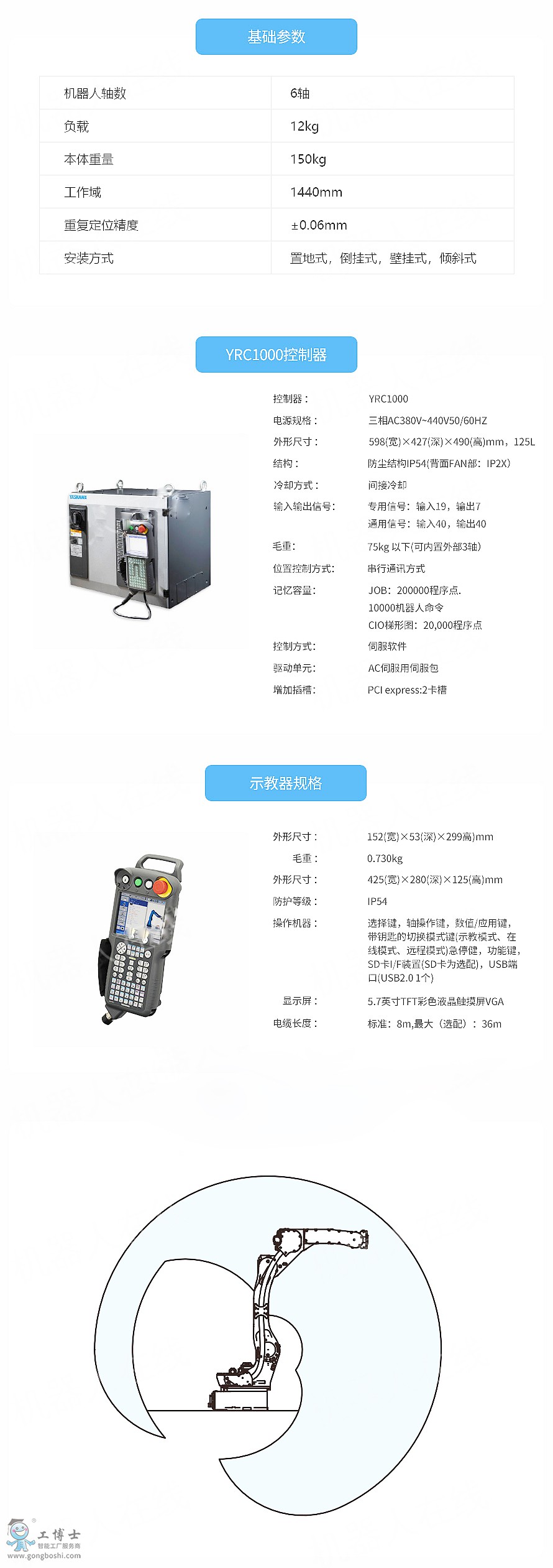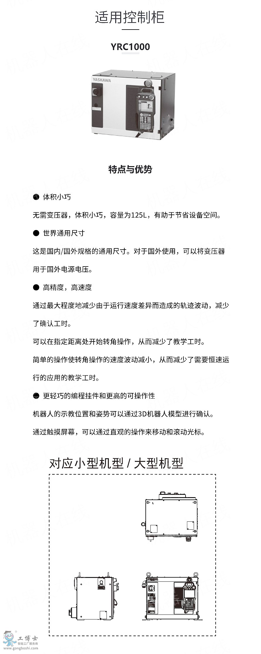 生產(chǎn)效率大幅度提升 ●合成速度比原有機型提升約30% 實現(xiàn)節(jié)拍時間縮減 ●采用了減小手臂與周邊設備的干涉的設計 ●采用中空手臂構(gòu)造,可將傳感線纜以及氣體管道內(nèi)置其中 抗干擾的堅固構(gòu)造 ●機器人手腕部分采用IP67標準 ●可對應接頭基座面向下引出 提升維護性 ●減少了機器人與控制柜間的電纜線數(shù),提升了維護性的同時提供簡潔的設備 ● 大幅度縮減電纜定期更換作業(yè)時間