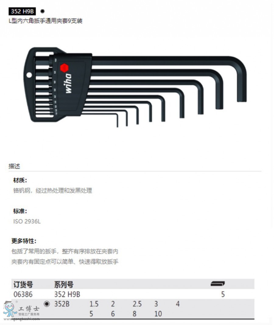 威漢 wiha 352H9B經典型內六角L扳手套裝9支裝德國原裝進口06386 |