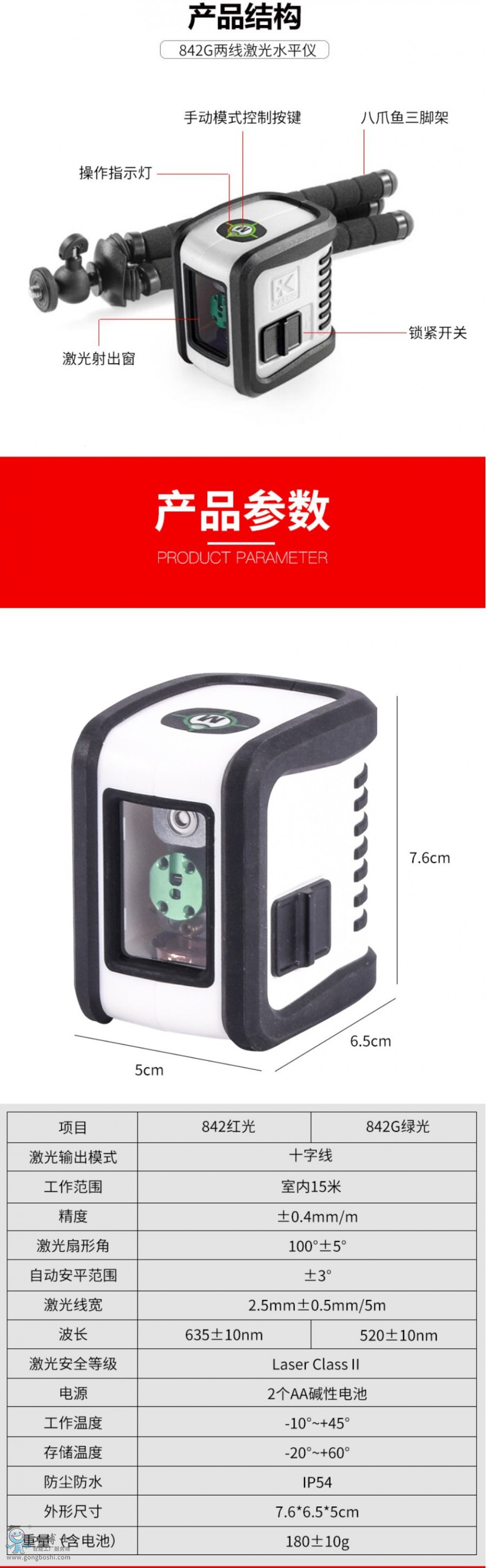 開普路(kapro)紅外線激光水平儀綠光2線細線高精度投線儀迷你標線儀含三腳架 842GS