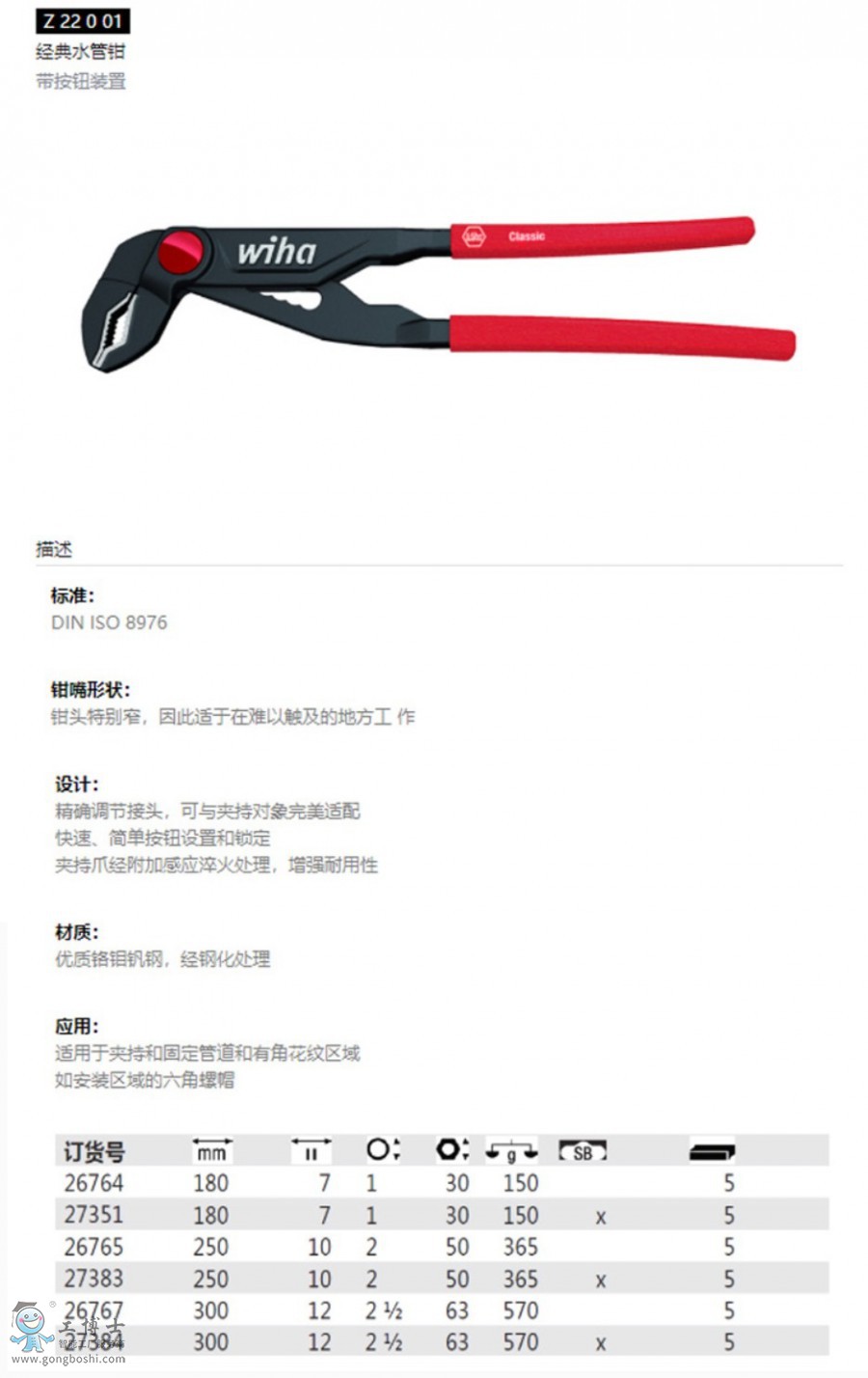 威漢 wiha Z22018001經典水泵鉗180mm德國原裝進口26764