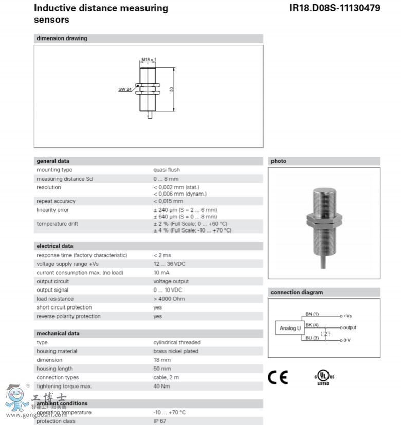 IR18.D08S-11123879堡盟傳感器Baumer電感式測距傳感器 |