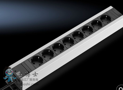 8 路插座板用于帶保護接地觸點的插頭型號(型號 F,CEE 7/4)。這類插座板可垂直安裝在機柜框架上或 482.6 mm (19") 型材的后面。在 482.6 mm (19") 型材上需要多于 2 U 的空間。插座設置成 45°,這樣也可以簡單使用角型插頭。連接電纜存放在插座板的一個接線嵌套內。接線嵌套配有一個單獨的蓋板和外部接線端子,以便單獨接地。