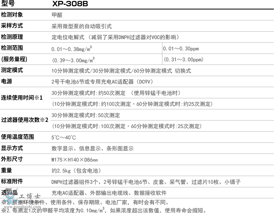 - 0.01~0.38mg/m³、0.01~0.30ppm