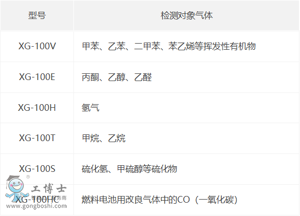 04.根據檢測氣體對象不同,該系列有6種機型