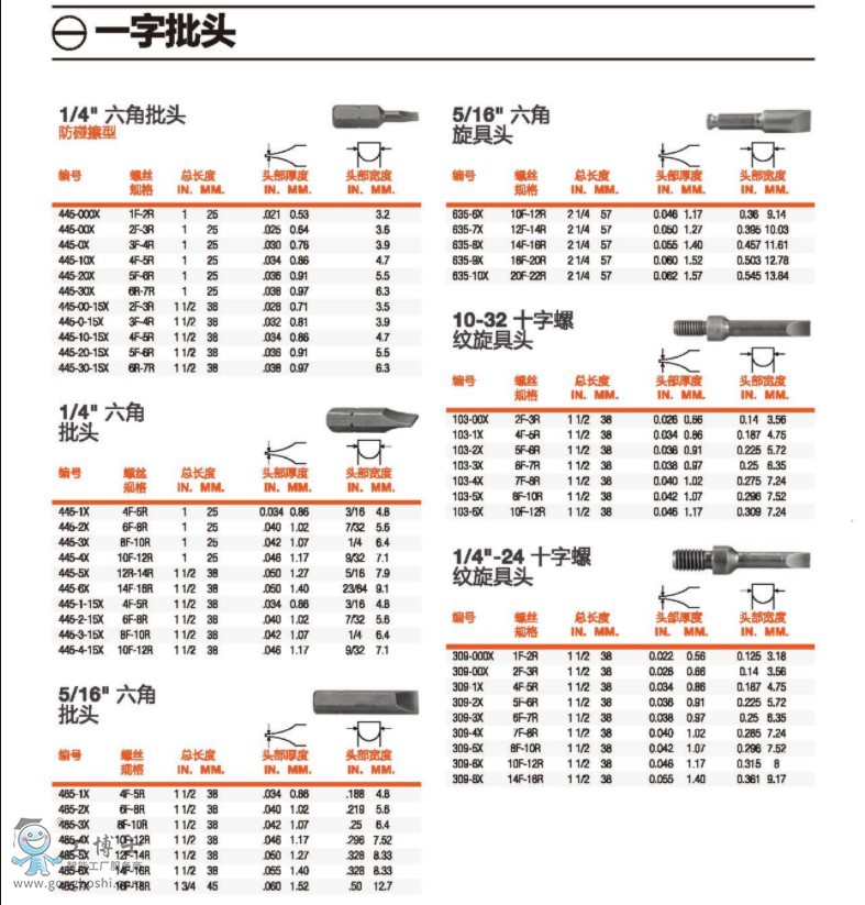 艾沛克斯APEX插入式和動力式旋具頭--一字批頭工具