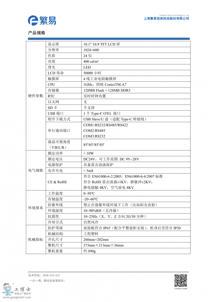 繁易(FBox)人機界面FE7100W 10.1寸|編程調試|售后維修