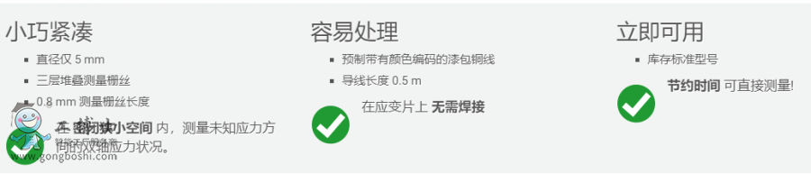微型應變花 RF9 直徑僅有 5 mm,非常合適用于印刷電路板和極小部件的機械性能測試。