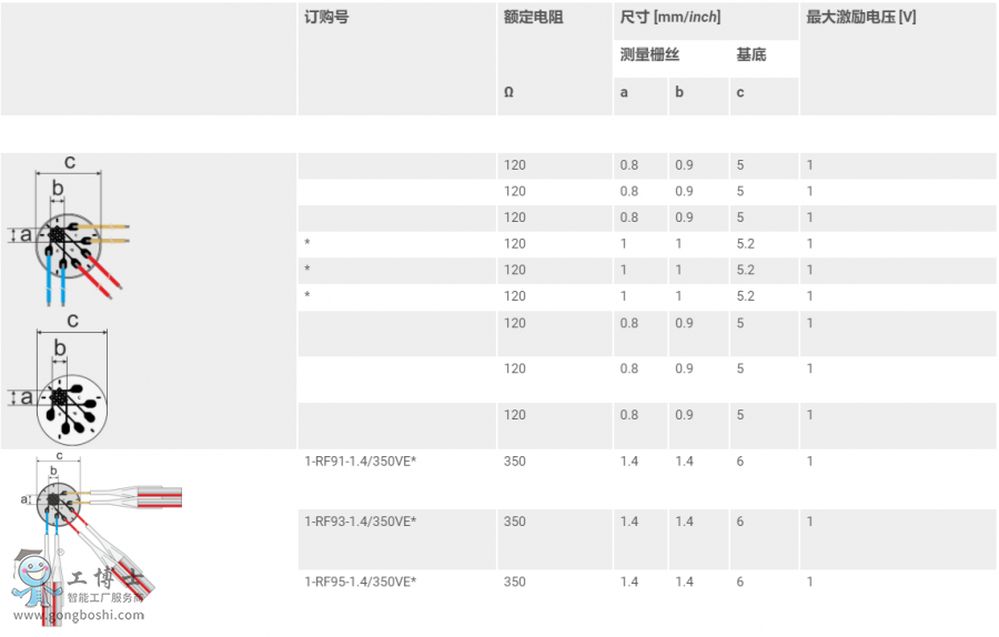 預接薄漆包銅線 (d=0.2 mm),極小的測量柵絲: 1-RF9x-0.8/120ZE