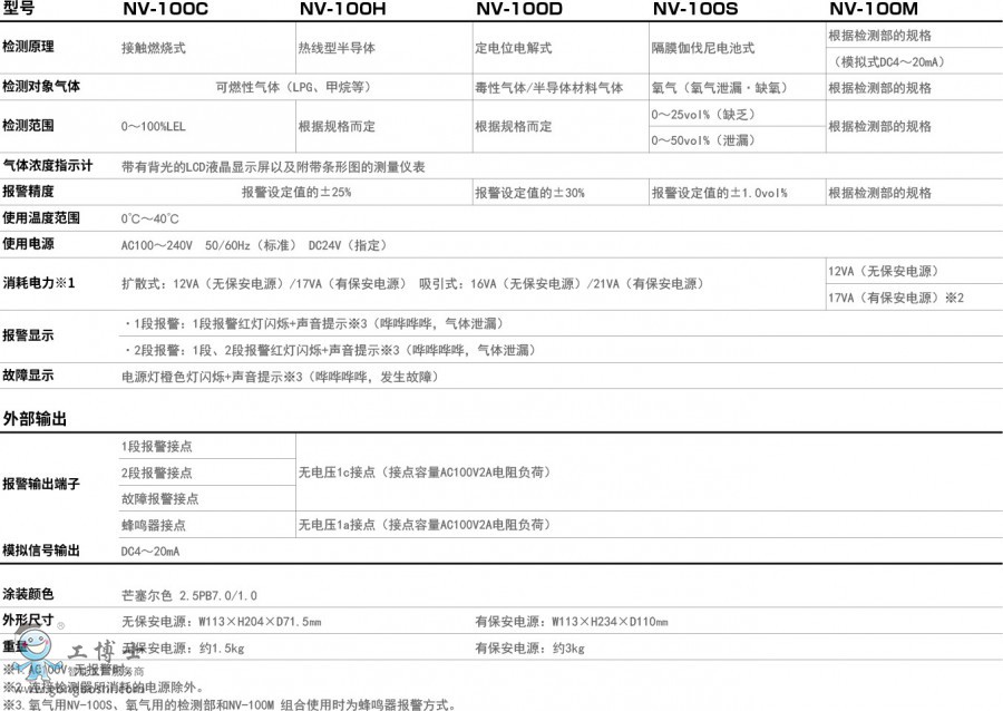 ● NV-100系列***新推出DC4~20mA產品?梢赃B接多種氣體檢測部、氣體報警器