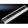 8 路插座板用于帶保護接地觸點的插頭型號(型號 F,CEE 7/4)。這類插座板可垂直安裝在機柜框架上或 482.6 mm (19") 型材的后面。在 482.6 mm (19") 型材上需要多于 2 U 的空間。插座設置成 45°,這樣也可以簡單使用角型插頭。連接電纜存放在插座板的一個接線嵌套內。接線嵌套配有一個單獨的蓋板和外部接線端子,以便單獨接地。