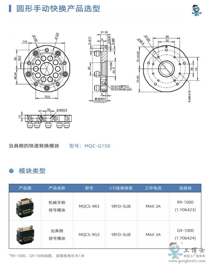GBS-04-MQC-150 工博士機器人圓形手動快換裝置
