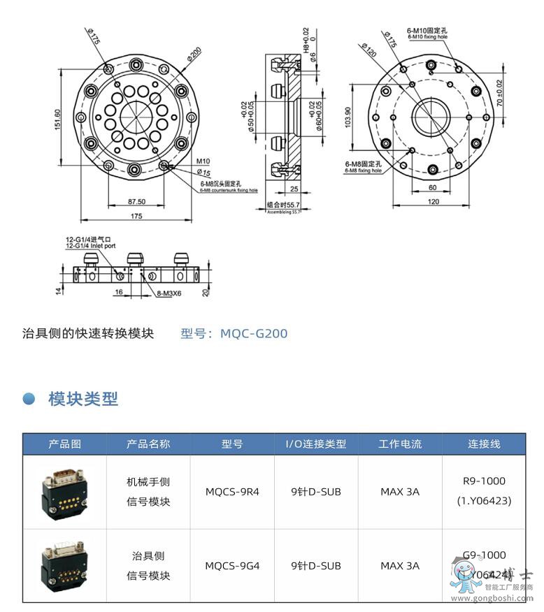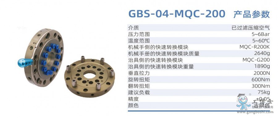 GBS-04-MQC-200 工博士機器人圓形手動快換裝置