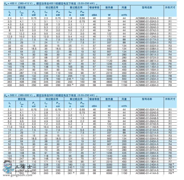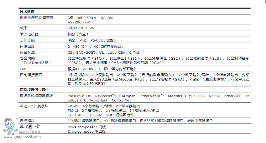 ABB變頻器ACS880系列產(chǎn)品規(guī)格參數(shù):