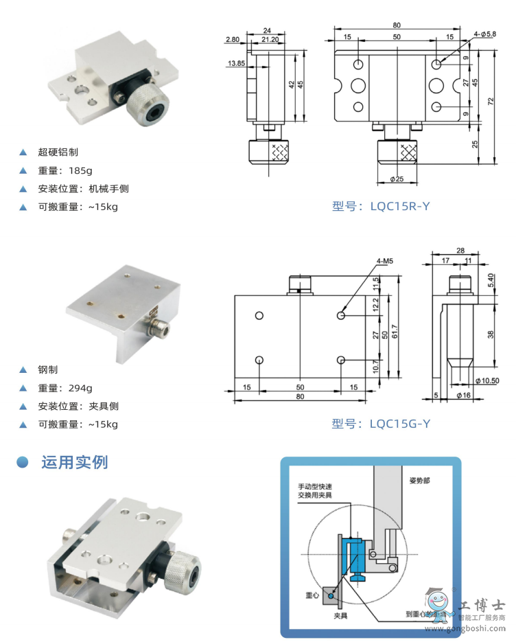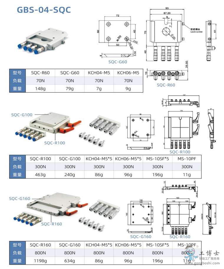 工博士機器人方形和L形手動快換產品|GBS-04-SQC|LQC15R-Y|機器人周邊配套產品