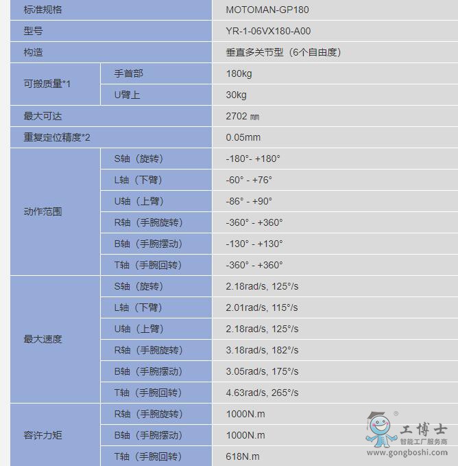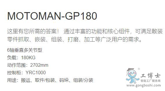 安川機器人 -GP HP系列 MOTOMAN-GP180 通用機器人 |