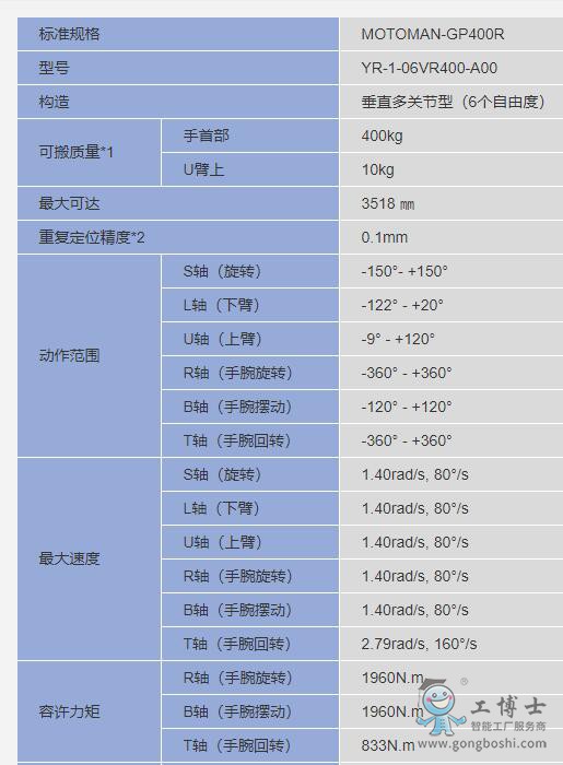 安川機器人 -GP HP系列 MOTOMAN-GP400R 通用機器人 |