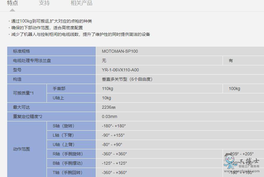 安川機器人 -AR VA MC系列 MOTOMAN-SP100 焊接機器人 |