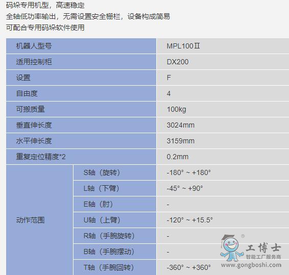 安川機器人 -MPL系列 MPL100 二系列 碼垛機器人