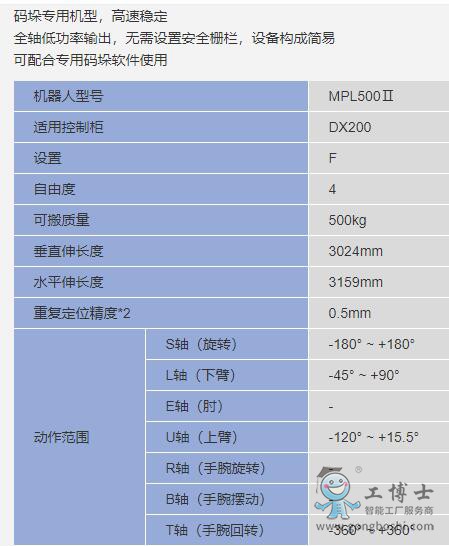 安川機器人 -MPL系列 MPL500 二系列 碼垛機器人