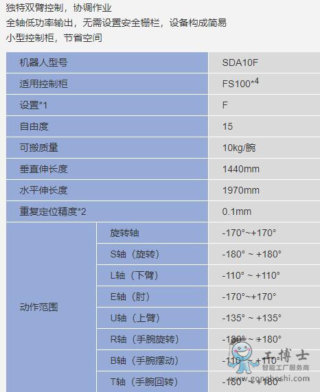 安川機器人 -SDA SIA系列 SIA10F 通用機器人