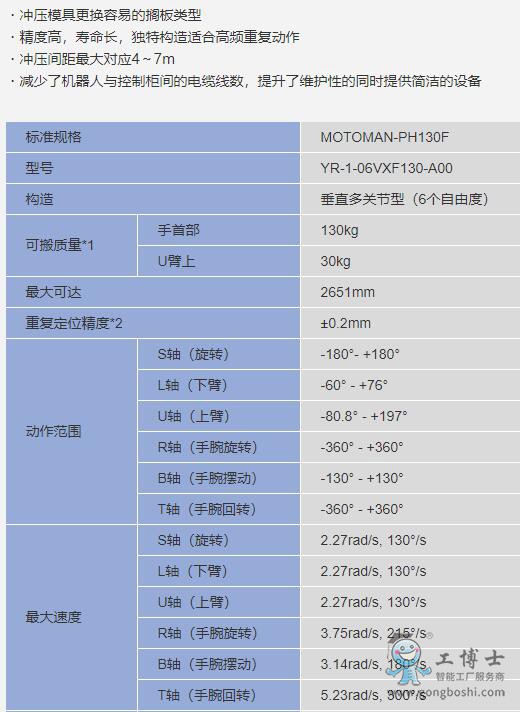 安川機(jī)器人 -機(jī)器人PH EP/MH3BM系列-MOTOMAN-PH130F 沖壓專用 通用機(jī)器人