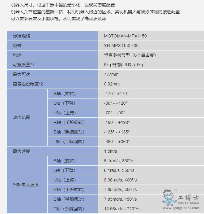 安川機器人 -MPX MPO EPX 系列-MOTOMAN-MPX1150 噴涂機器人 |