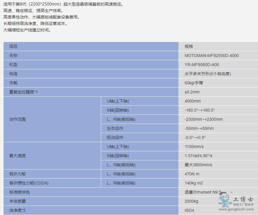 安川機器人 -SEMISTAR-M V系列/MCL MFL MFS -MFS 2500D 搬玻璃專
