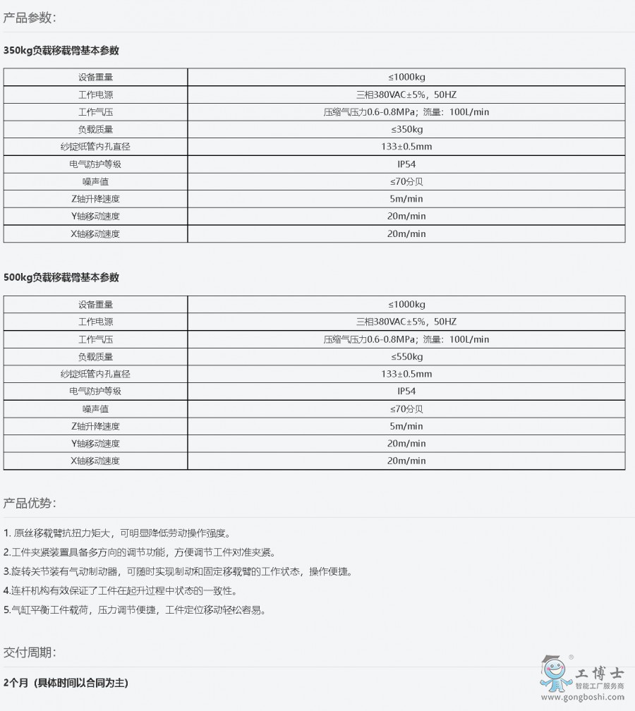 3.旋轉關節裝有氣動制動器,可隨時實現制動和固定移載臂的工作狀態,操作便捷。
