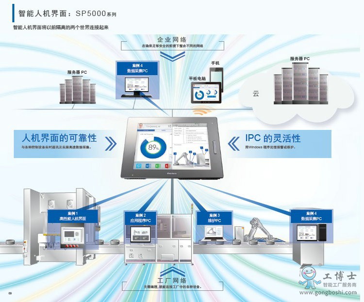 6)以太網多重連接功能:使用以太網多重連接功能,不需要更改控制器上的任何設置,即可以在生產設備上輕松添加人機界面用作子顯示。