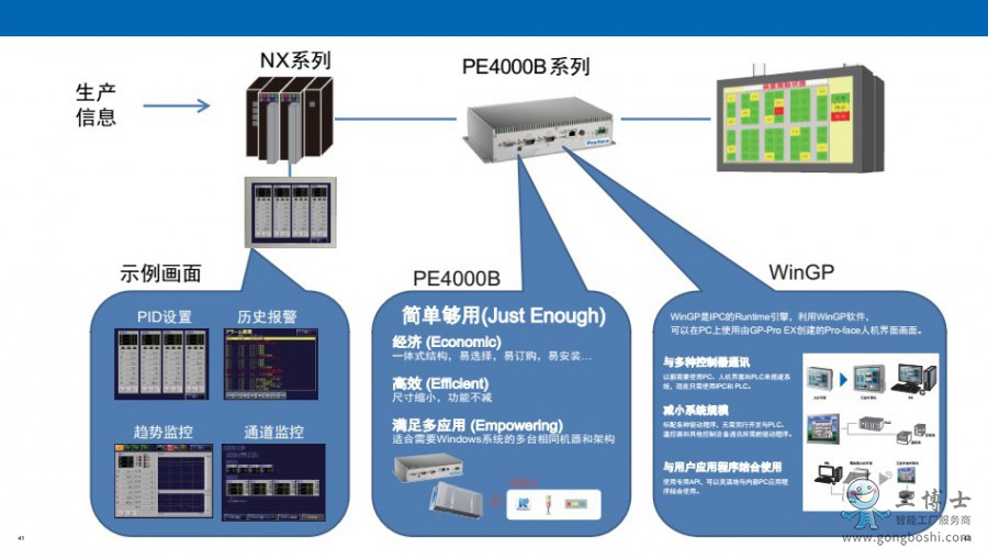 5)人機界面畫面和邏輯編程軟件:所有PR0-FACE3000與4000系列產品均實用,支持經優化的措施操作,無需編程即可簡介多種設備。