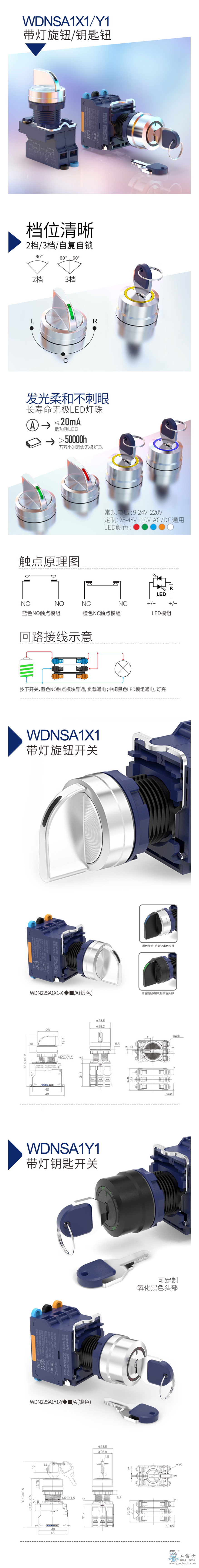 6.LED電壓:9-24V,220V;紅綠黃藍白色發光。